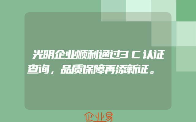 - 光明企业顺利通过3C认证查询,品质保障再添新证。