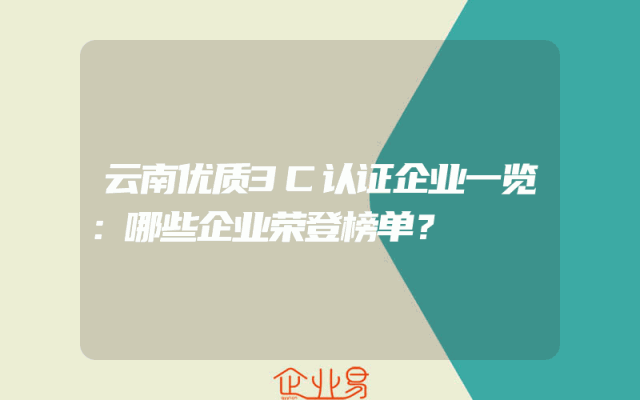 - 云南优质3C认证企业一览:哪些企业荣登榜单?