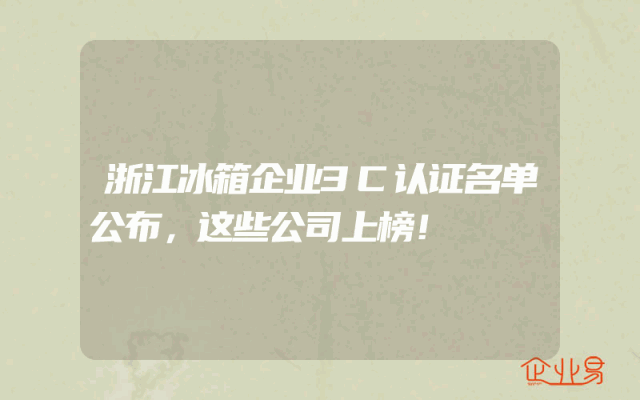 - 浙江冰箱企业3C认证名单公布,这些公司上榜!