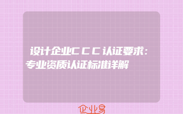 - 设计企业CCC认证要求:专业资质认证标准详解