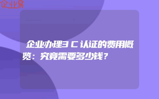 - 企业办理3C认证的费用概览:究竟需要多少钱?