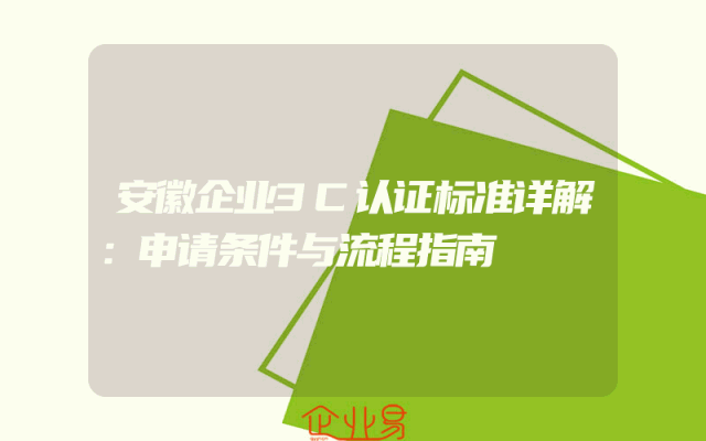 - 安徽企业3C认证标准详解:申请条件与流程指南
