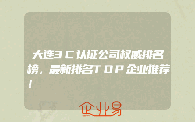 - 大连3C认证公司权威排名榜,最新排名TOP企业推荐!