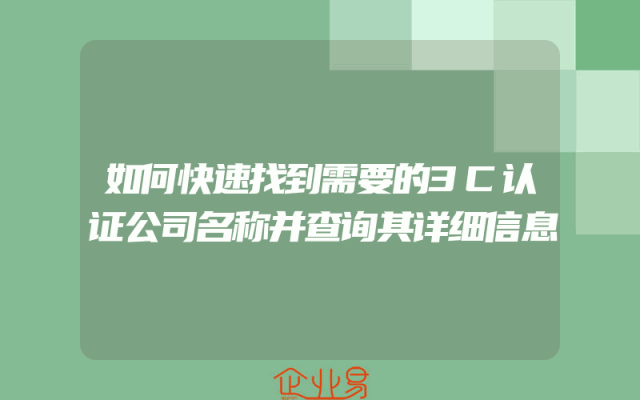 - 如何快速找到需要的3C认证公司名称并查询其详细信息