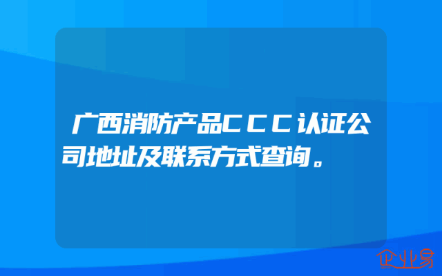 - 广西消防产品CCC认证公司地址及联系方式查询。