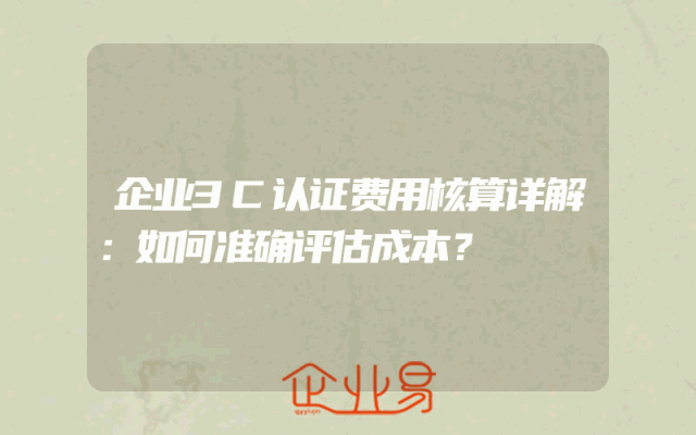 - 企业3C认证费用核算详解:如何准确评估成本?