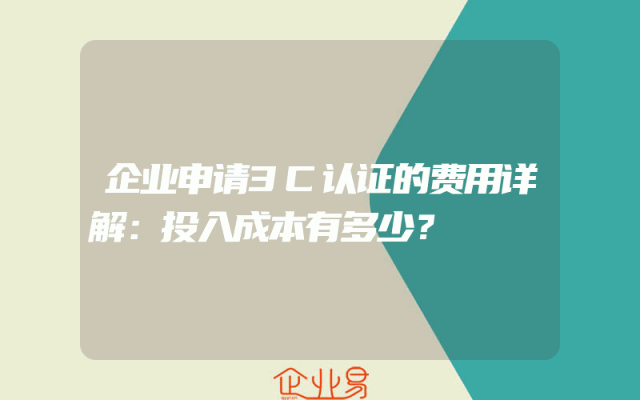 - 企业申请3C认证的费用详解:投入成本有多少?