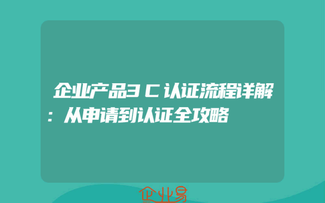 - 企业3C首次认证流程详解:图解资质申请全攻略