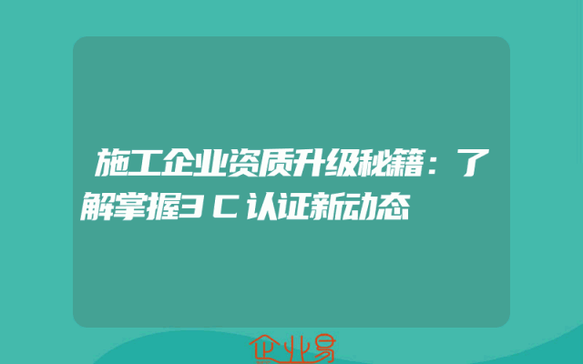 - 施工企业资质升级秘籍:了解掌握3C认证新动态