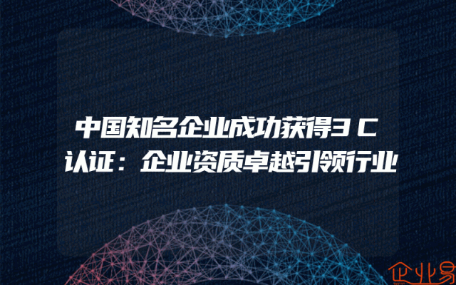 - 中国知名企业成功获得3C认证:企业资质卓越引领行业