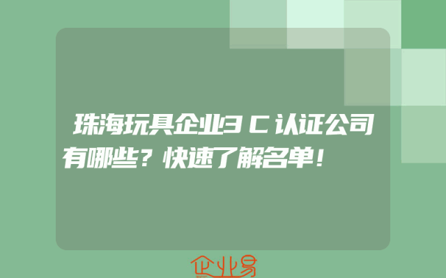 - 珠海玩具企业3C认证公司有哪些?快速了解名单!