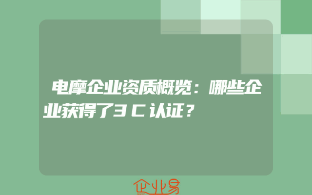 - 电摩企业资质概览:哪些企业获得了3C认证?