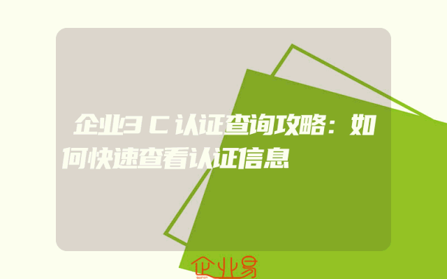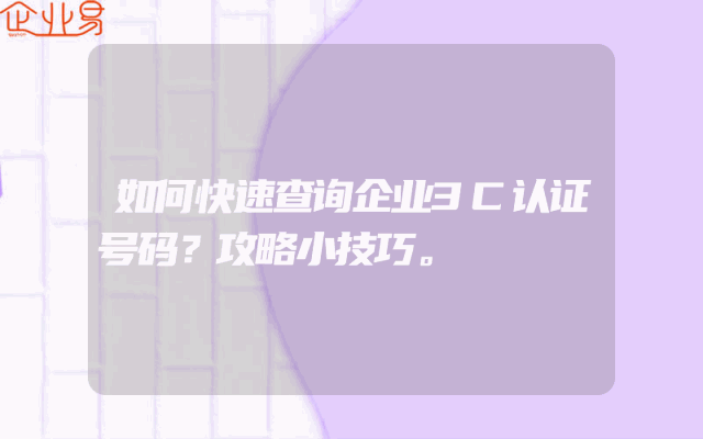 - 如何快速查询企业3C认证号码?攻略小技巧。