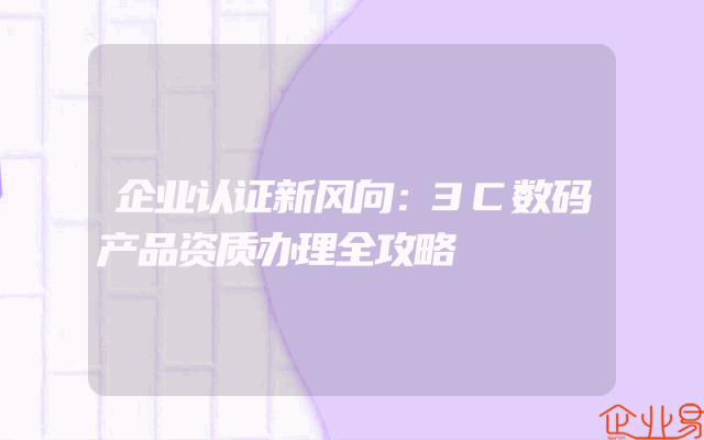 - 企业认证新风向:3C数码产品资质办理全攻略