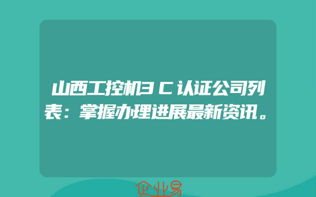 - 山西工控机3C认证公司列表:掌握办理进展最新资讯。