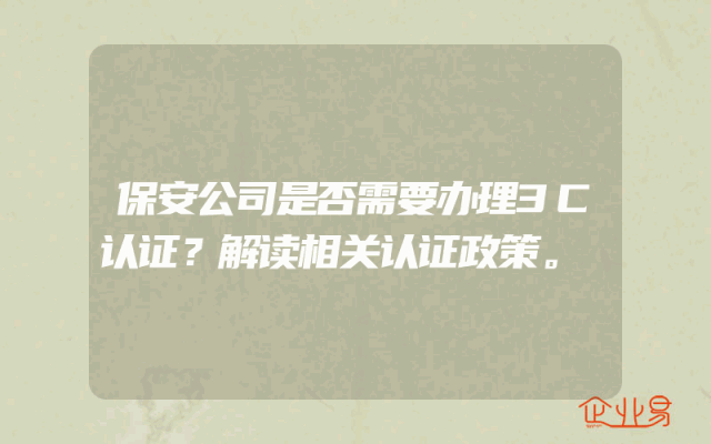 - 保安公司是否需要办理3C认证?解读相关认证政策。