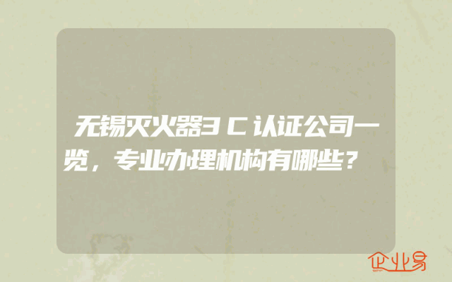 - 无锡灭火器3C认证公司一览,专业办理机构有哪些?