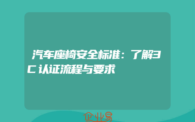 - 汽车座椅安全标准:了解3C认证流程与要求