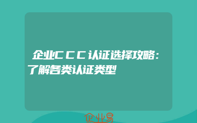 - 企业CCC认证选择攻略:了解各类认证类型