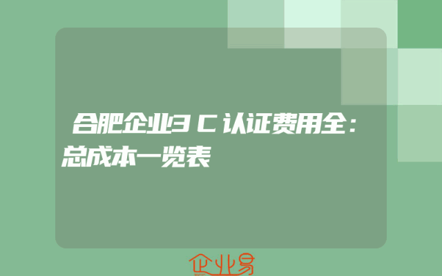 - 合肥企业3C认证费用全解析:总成本一览表一、合肥企业3C认证概述合肥作为安徽省的省会城市,其企业在追求高质量发展的过程中,越来越多地涉及到产品认证,其中3C认证是许多企业必经之路。3C认证是中国政府为保护消费者人身安全加强产品质量管理的一种