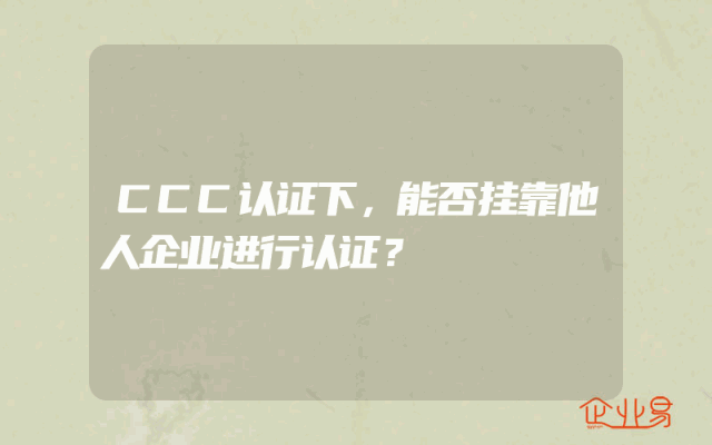 - CCC认证下,能否挂靠他人企业进行认证?