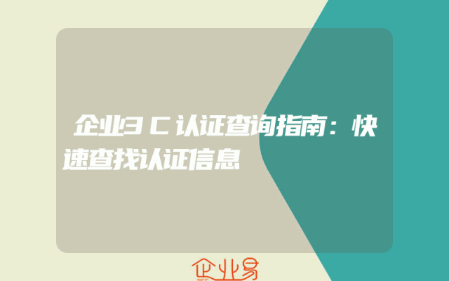 - 企业3C认证查询指南:快速查找认证信息