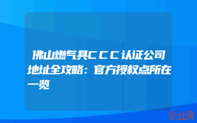 - 佛山燃气具CCC认证公司地址全攻略:官方授权点所在一览