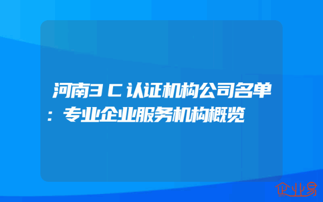 - 河南3C认证机构公司名单:专业企业服务机构概览
