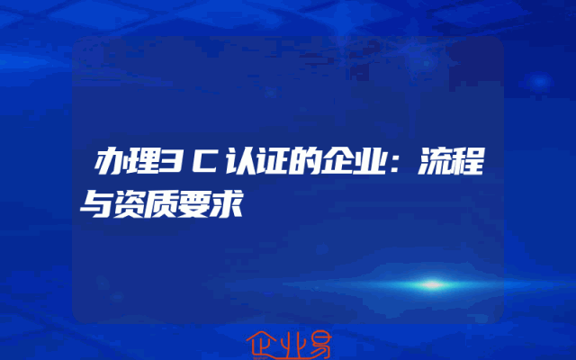 - 办理3C认证的企业:流程与资质要求