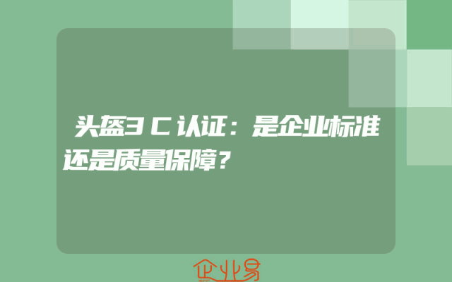 - 头盔3C认证:是企业标准还是质量保障?