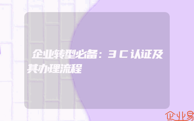 - 企业转型必备:3C认证及其办理流程