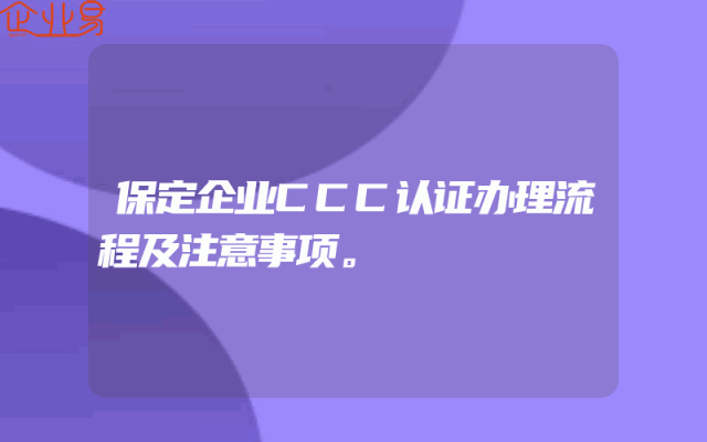 - 保定企业CCC认证办理流程及注意事项。