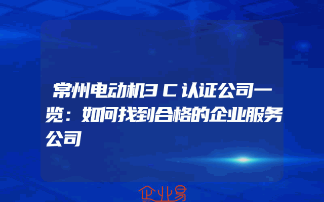 - 常州电动机3C认证公司一览:如何找到合格的企业服务公司