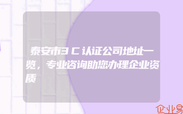 - 泰安市3C认证公司地址一览,专业咨询助您办理企业资质