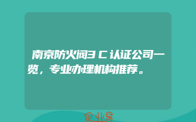 - 南京防火阀3C认证公司一览,专业办理机构推荐。