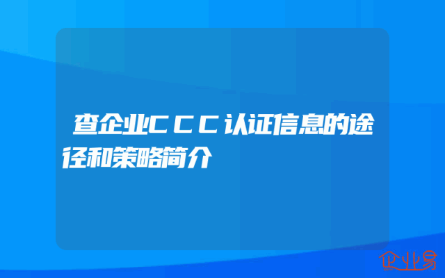 - 查企业CCC认证信息的途径和策略简介
