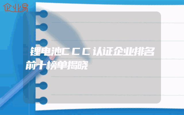 - 锂电池CCC认证企业排名前十榜单揭晓