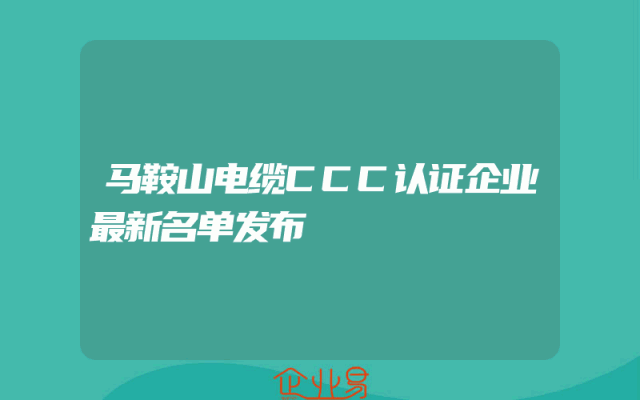 - 马鞍山电缆CCC认证企业最新名单发布