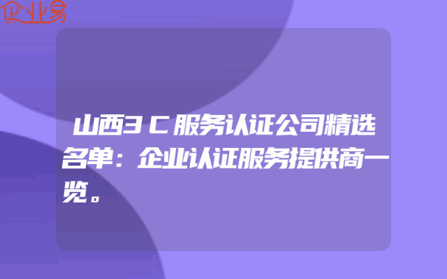 - 山西3C服务认证公司精选名单:企业认证服务提供商一览。