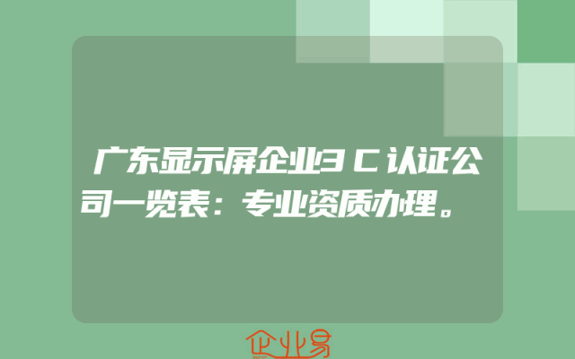 - 广东显示屏企业3C认证公司一览表:专业资质办理。