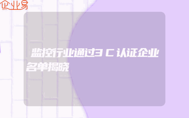 - 监控行业通过3C认证企业名单揭晓一、监控行业迎来新的里程碑随着市场监管的日益严格,监控行业逐渐走向规范化。近日,备受瞩目的通过3C认证的企业名单终于揭晓,标志着监控行业迈入一个新的发展阶段。这一事件对整个行业的发展产生深远影响,不仅提升了企