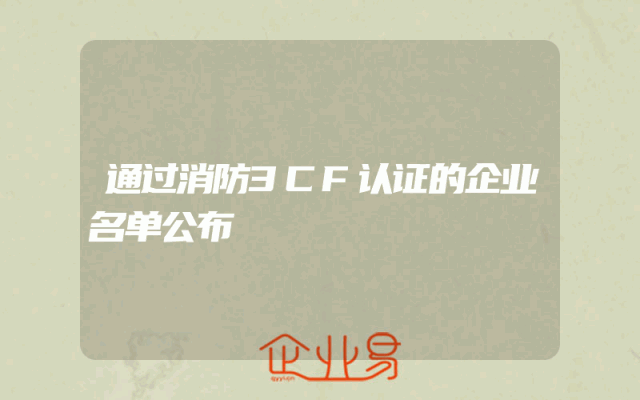 - 通过消防3CF认证的企业名单公布一、认证背景概述随着消防安全的日益重视,为了保障企业和公众的生命财产安全,消防认证成为企业消防安全的重要标准。消防3CF认证是其中一项重要的认证体系,它要求企业必须符合消防安全的一系列标准与规范。经过