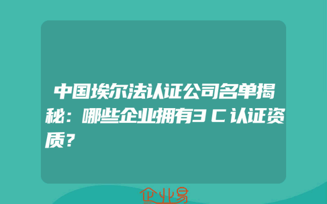 - 中国埃尔法认证公司名单揭秘:哪些企业拥有3C认证资质?