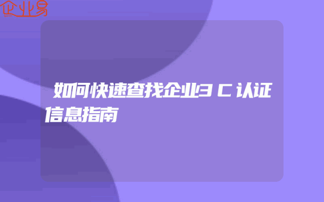 - 快速查找企业3C认证信息指南在现代市场环境中,企业的3C认证已成为众多行业的基本准入门槛。无论是消费者还是企业合作伙伴,都对企业的3C认证情况产生关注。本文将引导您如何快速查找企业3C认证信息,帮助您