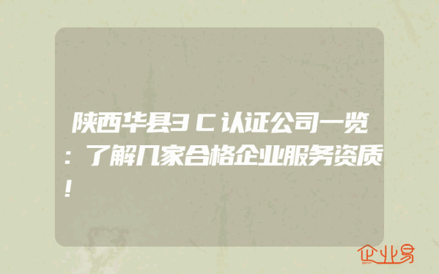 - 陕西华县3C认证公司一览:了解几家合格企业服务资质!