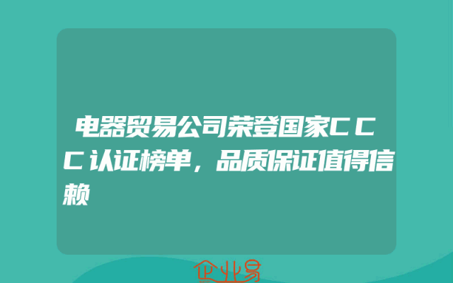 - 电器贸易公司荣登国家CCC认证榜单,品质保证值得信赖