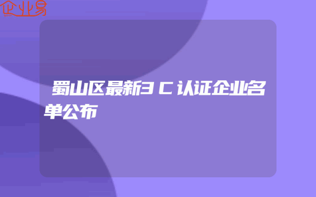 - 蜀山区最新公布的一批获得3C认证的企业名单及其影响力解读近日,蜀山区发布最新的一批获得强制性产品认证(即3C认证)的企业名单,标志着蜀山区在质量管理和产品安全方面取得了新的突破。本文将围绕这一事件,从不同角度阐述观点,解读其背后的意义和影响