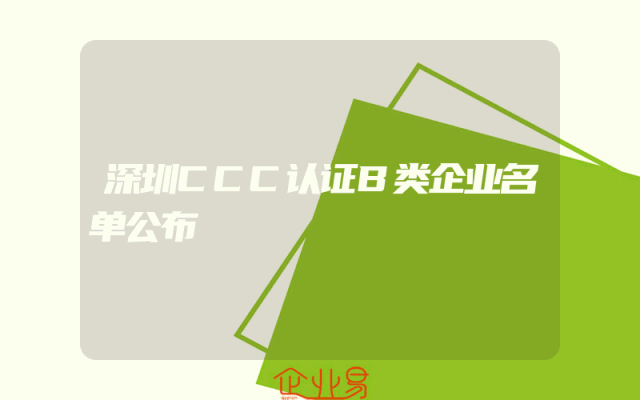 - 深圳CCC认证B类企业名单公布一、深圳CCC认证概述深圳作为中国的经济特区,一直以来都是企业创新与发展的热土。在产品质量控制方面,CCC认证显得尤为重要。CCC认证,全称为中国强制认证,是中华人民共和国为保护消费者人身安全和国家安全
