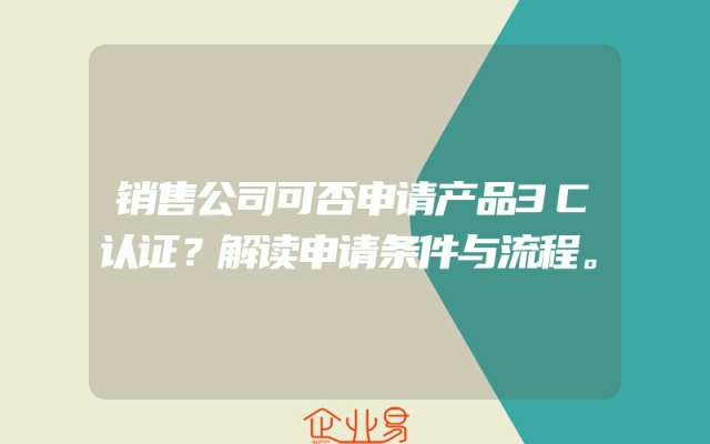 - 销售公司可否申请产品3C认证?解读申请条件与流程。