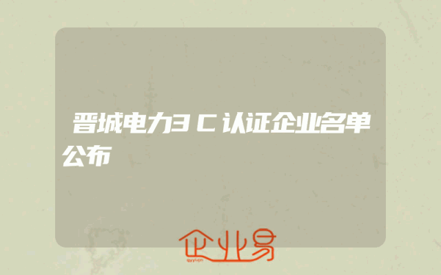 - 晋城电力3C认证企业名单公布近年来,电力行业的发展迅速,为确保电力产品的质量和安全,晋城地区高度重视电力企业的3C认证工作。近期,晋城电力3C认证企业名单正式公布,这是晋城电力行业的一大盛事,标志着晋